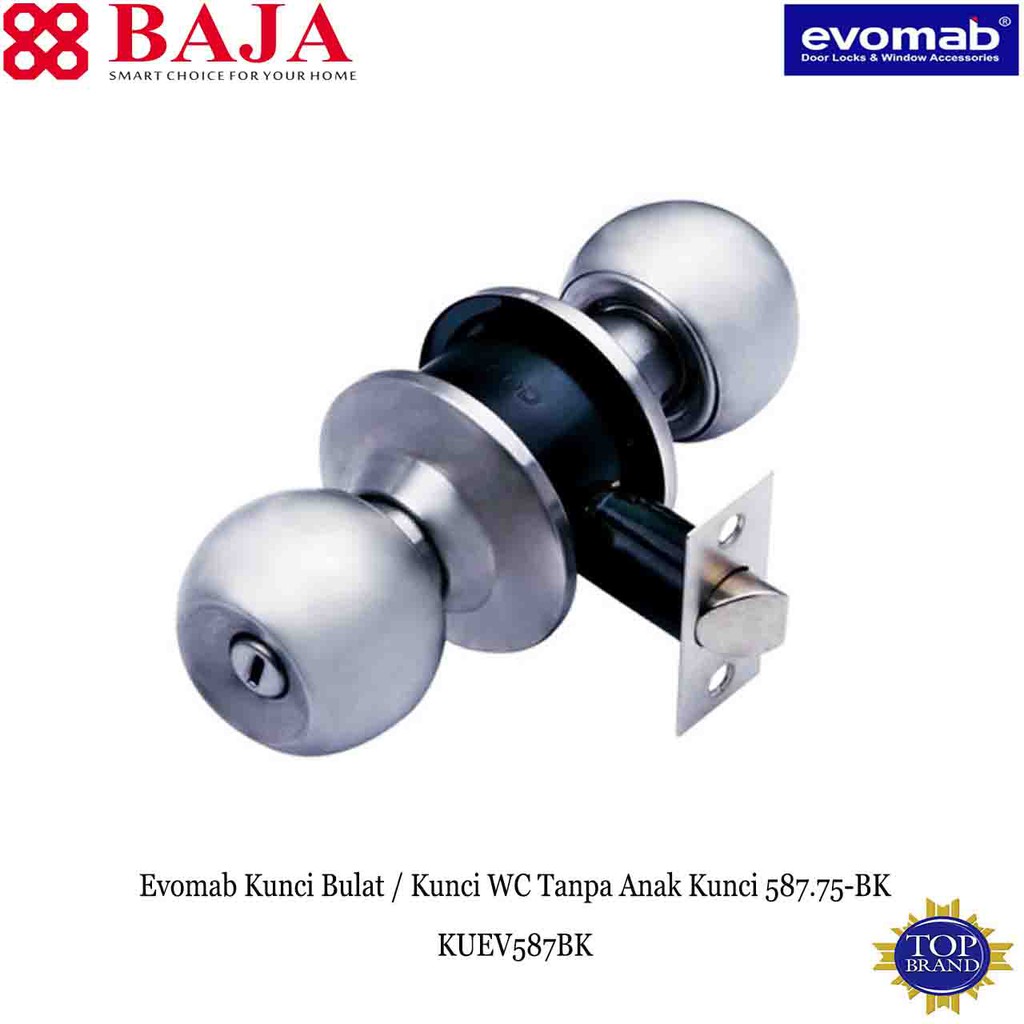 Dikarenakan Stock Kami Berjalan, Mohon Tanyakan Stock Terlebih Dahulu Sebelum Melakukan Pemesanan Ya Kak ^.^Cocok digunakan untuk pintu toilet / kunci WC.GARANSI 5 TAHUN UNTUK MEKANIKAL.- Menggunakan sistem Emergency Pin bila terkunci dari dalam. Bisa menggunakan obeng minus atau koin untuk membuka dalam keadaan darurat.- Bahan handle : Stainless. Lebih tahan karat.- Diameter Handle : 5,3 cm- Lebar Ring: 6,4 cm- Panjang Plat Lidah: 5,7 cm- Lebar Plat Lidah: 2,6 cm- Berat Handle / pasang : 485 gr- Backset : 40mmSpesifikasi :1. Merk / Type : EVOMAB / 587-SS-BK2. Finishing : SN ( Satin Nikel )3. Diameter = 75 mm4. Paket tanpa anak kunciKeunggulan Cylinder Lock EVOMAB :1. Handle seluruhnya berbahan stainless3. Inner berbahan stainless dan galvanis sehingga lebih tahan karat4. Warranty 5 years for Mechanical (Mortise Lock & Cylinder)NB: -Untuk area semarang dan sekitarnya bisa konfirmasi terlebih dahulu untuk ongkir / berat barangnya-Saat membuka paket mohon divideo dari awal hingga akhir sehingga bila ada kendala dapat dijadikan bukti.Trimakasih Happy shopping