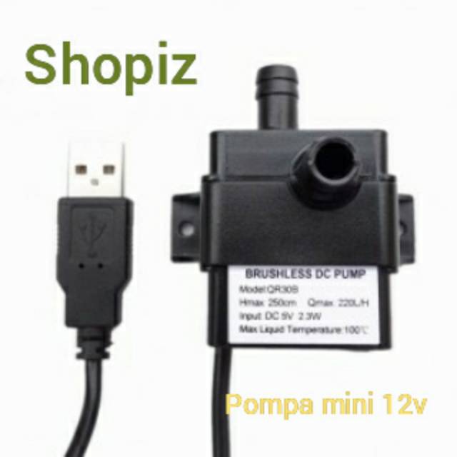 Pompa air dengan bentuk mini dan ditenagai hanya menggunakan kabel USB saja. Pompa ini memiliki fitur waterproof sumbersible sehingga cocok digunakan sebagai pompa aquarium. Pompa mini ini mampu menghasilkan tekanan air sebesar 240 liter per jam.USB PoweredPompa air dengan bentuk mini dan ditenagai hanya menggunakan kabel USB saja, mesikpun demikian pompa mini ini mampu menghasilkan tekanan air sebesar 240 liter per jam.Submersible Water PumpPompa ini memiliki fitur waterproof sumbersible sehingga cocok digunakan sebagai pompa aquarium.Small SizePompa ini hadir dengan bentuk kecil dan juga low power consumption sehingga cocok digunakan untuk berbagai keperluan seperti akuarium, car cooling, humidifier, air conditioner dan kebutuhan sirkulasi air lainnya.MaterialABSDimension56 x 52 x 47 mmOuter diameter of inlet / outlet: 9mm / 0.35inInner diameter of inlet / outlet: 6mm / 0.24inOthersTemperature resistance range: 0 ~ 60CPower consumption: 4.2WRated voltage: 12V DCMax flow rate: 240L/HMax lift: 300cm / 9.8ftNoise: Less than 35dBWaterproof class: