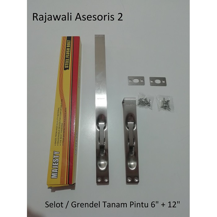 Selot / Grendel Tanam Stainless Steel 6" + 12"Merk : MajestyBahan : Stainless SteelUkuran : 6" + 12"Terdapat sekrup di dalam nyaTipe : Selot TanamKegunaan : Untuk selot tanam pintu 2Pembelian dalam jumlah banyak harap chat terlebih dahulu kepada penjualTerima