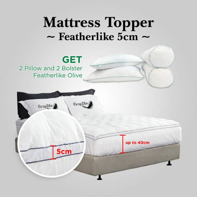 Big Sale On Mattress topper hotel set dengan tebal mattress topper 5cm. Dalam satu set berisi; 1Mattress Topper uk 200x2002Bantal Olive dan 2Guling OliveMattress topper hotel dengan rasa lembut,empuk dan nyaman ini cocok untuk anda dan keluarga.Promo hanya sampai 8-1