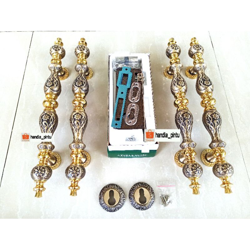 harga diatas agan akan mendapatkan4pcs handle pintu kuningan ukir1 set bodypelor2pcs lubang