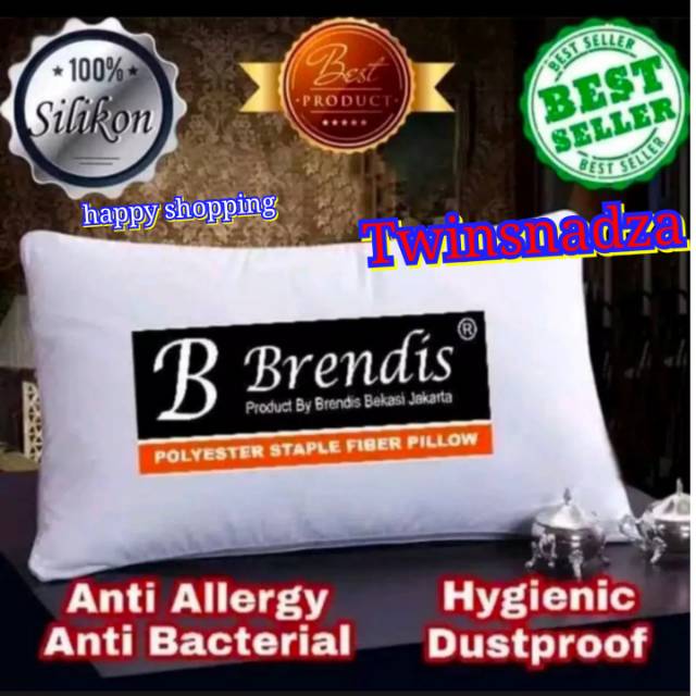 Bantal Tidur Kualitas Hotel, Harga BersahabatKelebihan Produk Bantal Brendis adalah :1. Kain lembut dan nyaman, tidak panas untuk dipakai2. Isi 100% Silicon lebih bagus dari dacron3. Empuk dan tidak mudah kempes4. Washable = bisa dicuci baik dengan mesin atau dicuci tangan5. Packaging yang kecil memudahkan pengiriman (ongkos kirim lebih terjangkau)6. Biss / Rip di sepanjang jahitan sehingga lebih kuat dan awet7. Ada label pita nya untuk menunjukkan keaslian produkPERBEDAAN Dacron dan Silicon adalah sebagai berikut :1. Warna : Dacron agak gelap, Silicon putih BERSIH 2. Serat : Dacron panjang, Silicon PENDEK3. Daya mengembang : Dacron kurang mengembang, Silicon sangat MENGEMBANG 4. Gumpalan : Dacron mudah menggumpal, Silicon TIDAK menggumpal5. Elastisitas : Dacron kurang elastis, Silicon jauh lebih ELASTIS dari dacron6. Kelembutan : Dacron agak kasar, Silicon LEMBUTCARA MENCUCI Bantal & Guling Silicon agar awet :1. Sediakan baskom / ember air dengan sedikit deterjen2. Rendam bantal / guling3. Sikat bagian luar yang kotor4. Bilas hingga bersih5. Jemur secara horizontal tanpa diperasUkuran:Bantal 47 x 65 cmGuling 30 x 85 cmBerat Bantal 730 gram Berat Guling 800