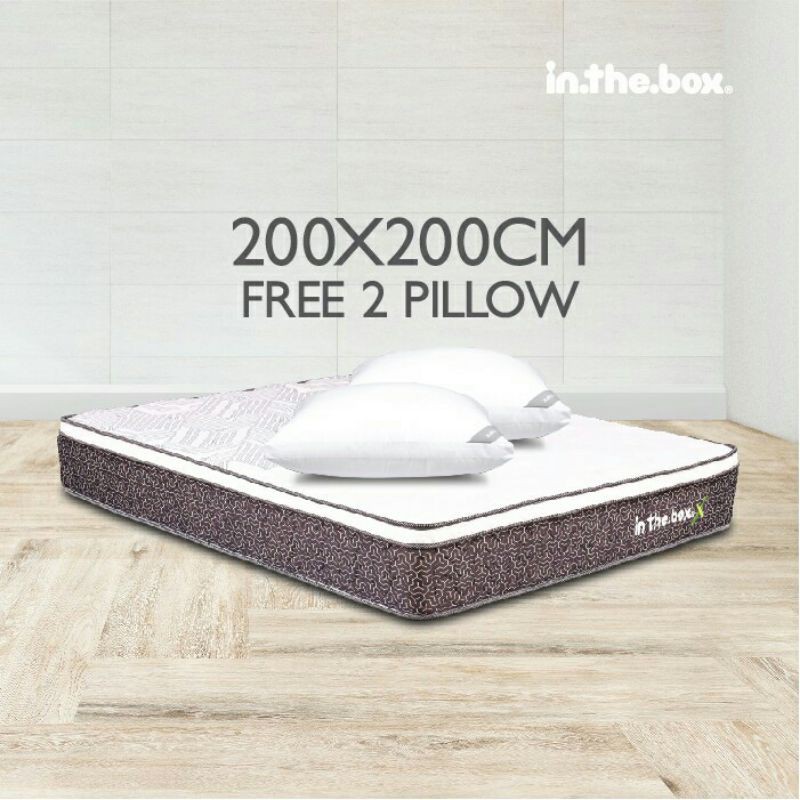 GRATIS ONGKIR SELURUH JAWA & BALI, KOTA PALEMBANG ,dan sebagian kota SumatraKOTA LAIN TANYAKAN VIA CHAT ya...MOHON PERHATIAN ; 1. Barang dijamin 1000% ORIGINAL INTHEBOX dan BARANG READY2. Membeli harus SABAR barang PASTI DIKIRIM,dan PASTI SAMPAI (DIJAMIN) karena barang besar & ber volume jadi butuh waktu lebih untuk pengemasan & pengiriman.3. Pengiriman menggunakan 2 ekspedisi , Pengiriman pertama yang akan sampai duluan adalah INVOICEnya disusul Pengiriman ke-2 yaitu unit INTHEBOXnya menggunakan kurir KARGO pilihan kami. Pengiriman menggunakan kurir KARGO lebih lama dari kurir reguler jadi harus SABAR.4. Unit INTHEBOX sampai di customer paling cepat bisa 3 hari kerja paling lama bisa 14 hari kerja tergantung lokasi customer & antrian di kurir kargo jadi sekali lagi mohon bersabar sampai 14 hari kerja.Deskripsi Kasur Spring Bed Inthebox X Ukuran 200x200x27Spring Bed Inthebox X merupakan satu-satunya spring bed keluaran Inthebox yang memiliki lapisan Plush Top/lapisan tambahan di bagian atas kasur untuk membuat tidur terasa lebih nyaman dan empuk. Spring Bed Inthebox X sudah menggunakan per jenis Pocket Spring yang didesain untuk memberikan support sempurna pada punggung. Selain itu spring bed ini menggukanan Busa Premium dengan kepadatan tinggi dan supersoft yang dilengkapi dengan teknologi fiber (Fibertech). Spring Bed Inthebox X ini memiliki tingkat kekerasan soft sehingga cocok untuk digunakan semua kalangan dan sudah support untuk Orthopedic (mampu menopang pertumbuhan tulang). Spring Bed Inthebox X ini akan dikirimkan dalam kemasan box untuk memudahkan konsumen saat memasukkan spring bed ke dalam kamar dan mengurangi ongkos kirim dari spring bed.Ketebalan springbed = 27 cmFree BantalCover Material :Kain knitting menggunakan quilting supersoft, sehingga Inthebox Spring bed tipe X ini tidak akan terasa panas dimalam hariJahitan benang dan finishing rapi**SYARAT DAN KETENTUAN FREE PILLOW1. Bonus 2 buah bantal akan diberikan untuk setiap pembelian bed inthebox ukuran: - 200x200 cm (Super King Size)- 180x200 cm (King Size)- 160x200 cm (Queen Size)2. Bonus 1 buah bantal akan diberikan untuk setiap pembelian bed inthebox ukuran:-120x200 cm (Full Size)-100x200 cm (Super Single Size)- 90x200 cm (Single Size)3. SETIAP BONUS TERSEBUT LANGSUNG DISERTAKAN DI DALAM KEMASAN BOX BED INTHEBOXWARANTYGaransi Per atau Pegas 10 TahunNB: Posisi Kasur tidak boleh dimiringkan/diberdiri