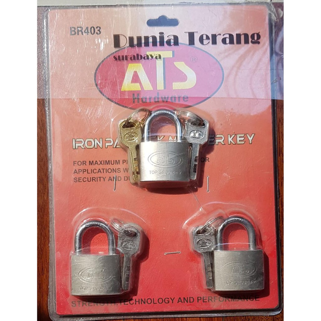 Harga Pabrik Perlengkapan di Kabupaten Purworejo Gembok Putih Master Key Ats Uk 40mm Isi 3pcs / Iron Padlock 40 Mm Set 3 Pc Br403 Pagar Rumah Toko dari ATS Kota Surabaya