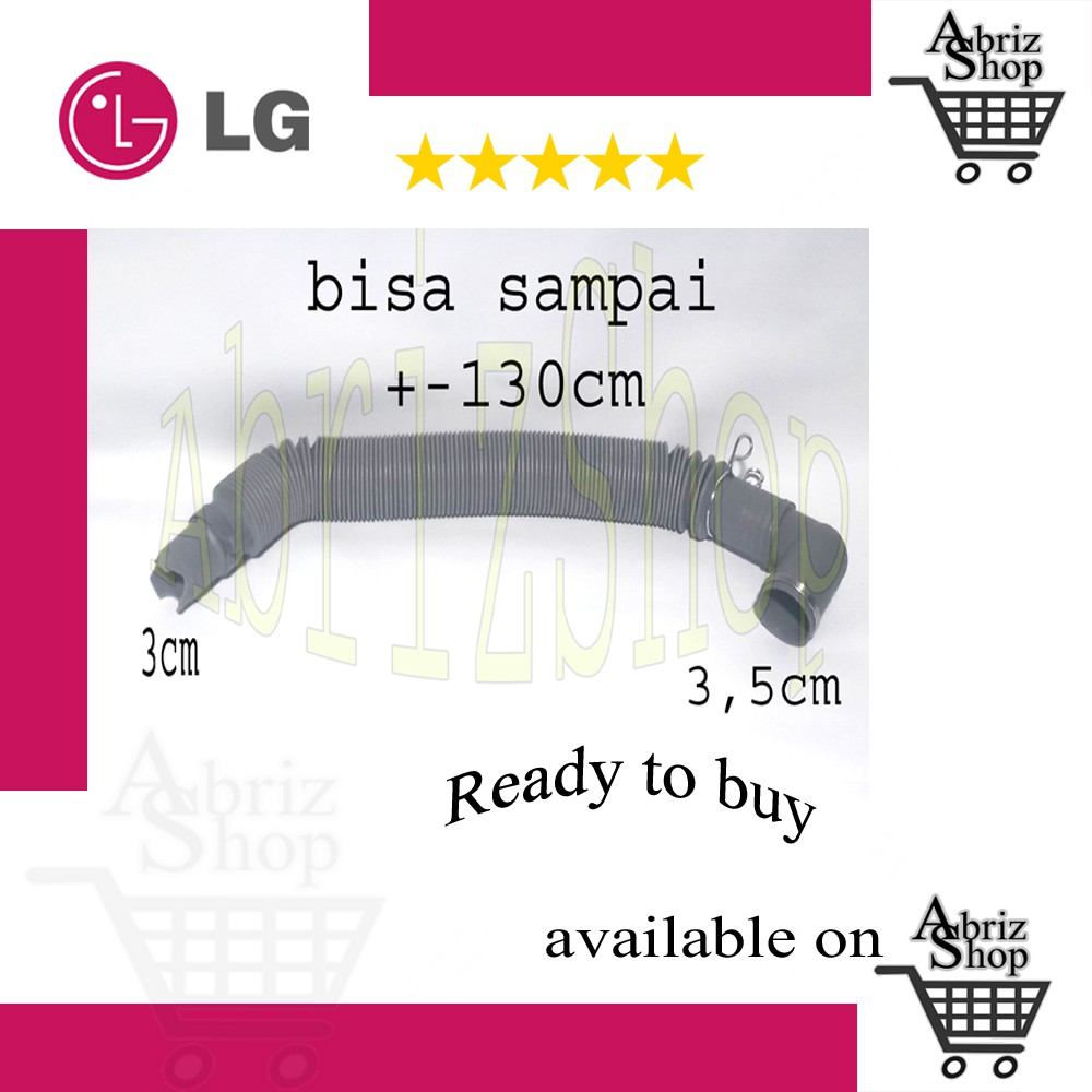 Selang pembuangan air mesin cuci otomatis LG fleksibel drain hose abuSelang pembuangan air mesin cuci 1 tabung otomatis untuk merk LG .Panjang kurang lebih 1m +Diameter lubang 3,5CMwarna abu-abuDiameter Lobang 3,5 cm- Panjang max +/_ 130 cm- Panjang minimal 45cm dan panjang maximal jika ditarik penuh 120cm.- Flexibel mudah ditekuk, ditarik atau dipendekan kembali sesuai kebutuhan.- Bahan yg berkualitas tinggi, tebal dan tahan lama.- Diameter lubang terpasang